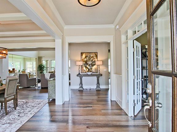 Castleberry 5BD/4BA with Guest Suite & full bath on Main. Formal LR/Study. Formal Dining. Great Rm w/2 niches by Fireplace opens to Kitchen w/island w/bar stool seating & walk-in pantry. Sep Breakfast Rm. Sep Morning Rm. Mud Rm w/valet & closet. Primary, 3BD's & 3BA's up 2 BD's share J&J Bath. 1 BD is suite w/private bath & walk-in closet. Laundry and Primary Suite up. Stock Images - Under construction.