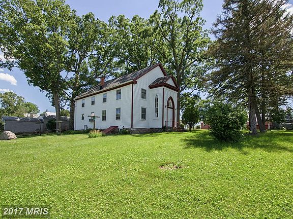 Circa 1890 church converted to 2 large apts- connecting stair in front hall allows use as a 1 family home. Both units are identical with LR DR Laundry, kitchen bath and 2 BR on each level with separate rear entrances both with covered porch and both metered separately with 1 central furnace.- .94 acre lot with outbuildings. Quiet tranquil country setting minutes to Frederick.