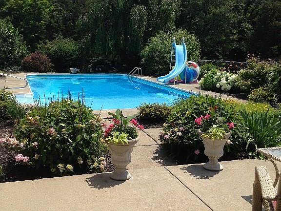Elegant European home 2 acres. 1 mile to town, 3 min. to Rt 33/I-80, mins. to Hospital and ESU. 5 Br w/ 4 1/2 baths. Custom eat-in Kitchen w/ Cherry cabinets, Granite Counters/Bar, contemporary single sink. Ceramic Tile flooring in Kitchen and All baths. 2 Master Suites: Whirlpool heated 5' Tub, Custom 5' tiled Double head shower with dual Marble sinks. Second Master w/Custom Shower w/ seat. Jack & Jill br w/shared bath & dual sinks. Vaulted foyer w/ Custom curved oak stairs. Hardwood flooring in foyer, dining, LR w/ gas fireplace. 3 linen closets. Sunken Library: custom Cherry Wall/shelves w/fluted columns and desk/drawers. Custom sound system. Family room w/ br/closet/full bath. 2 car gar. 2 patios, 20 by 40 in-ground pool w/ diving board and slide. PRIVATE English gardens. NO DUES!
