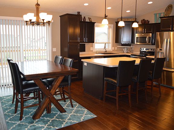 5 bedroom, 3 bathroom split level home for sale in North Bismarck's Sonnet Heights development. The home was built in 2011/2012. 3 bedrooms & 2 bathrooms on the main level, including master suite with walk-in closet and bathroom with high vanity/dual sinks & a 5' walk-in shower. Open floor plan kitchen, dining, & living room with vaulted ceilings. The kitchen boasts rich espresso cabinetry with a large island (storage front and back), and quality stainless steel Whirlpool Gold appliances. The walk-out basement is finished with 2 large bedrooms, a bathroom with double sink vanity, and a custom tiled 6 foot shower/whirlpool tub. The basement family room has a floor to ceiling stacked stone fireplace opposite a large custom bar/eating area. A laundry room with ample storage space is also located on the lower level. The attached 3 stall heated/insulated/sheet-rocked garage boasts almost 950 sq. ft., with ample storage space. In addition to the large attached garage, there is another 14'x20' garage on the property that will fit another vehicle, act as a handyman shop, or provide a huge amount of extra storage space. This shed has been wired, and has lighting installed. The front yard is beautifully landscaped with multi-level brick retaining walls, filled with perennial plants (fed by automatic drip line off the sprinkler system!) The back yard is spacious and functional with a huge 16'x20' deck with custom cable rail system. Under the deck you will find a huge covered patio surrounded by brick retaining walls. Electrical hook-up/space is present for a hot tub. On the south side of the house, you will find a large raised garden constructed with the same brick that runs throughout the yard. The automatic drip lines through the rows make gardening a breeze! The yard is enclosed by a custom cedar privacy fence with large pillars. Also present in the yard is an underground fence for your pets.