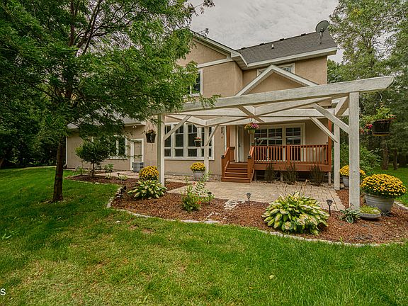Beautiful 2 story CUSTOM BUILT 5 bedroom home plus an office located in NW Rural Bismarck on a PRIVATE TREED 1.11 acre lot. This home boasts of QUALITY throughout including stunning cherry custom cabinets built by Interior Woodworks including a butlers pantry between kitchen and formal dining, stained glass windows, hardwood flooring, granite counter tops, large ceramic tile, natural stone fireplace in great room with floor to ceiling windows overlooking a private gorgeous treed yard, recessed lighting, french doors leading to main floor office plus so much more. You will fall in love with this HUGE 2 story home with over 4400 sq ft plus a LARGE garage and mancave with 1452 sq ft.