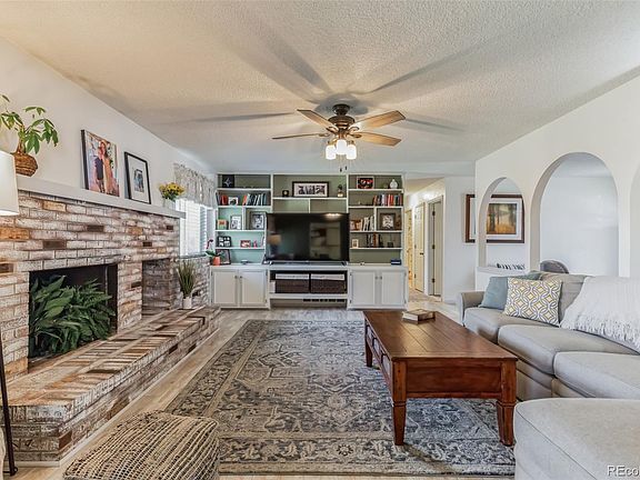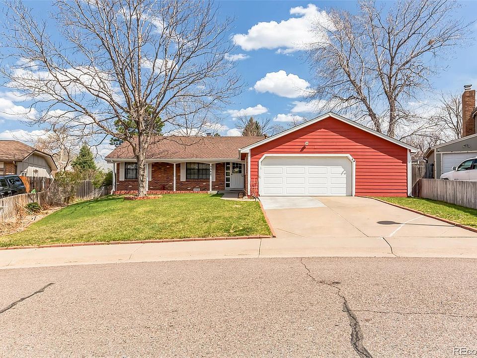 FANTASTIC single-family, ranch-style home in Littleton! Covered front porch welcomes you to 3 Bedrooms and 2 Bathrooms on a quiet cul-de-sac! The main level has a formal Living and Dining Rooms with curved archway details, Family Room with brick fireplace mantle and built-in shelves, and an eat-in Kitchen. Kitchen has white appliances and breakfast bar seating x2. Primary Bedroom has private bathroom. Fenced back yard has a covered patio and lots of room for kids and pets to run and play! Oversized garage is perfect for your vehicles, toys, and projects! Call now to schedule your showing!
