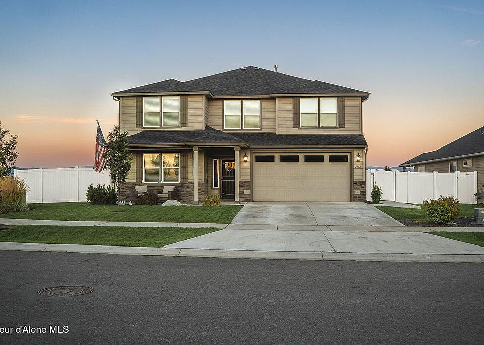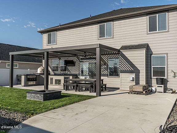 Welcome to 5542 W Irish Dr in Rathdrum—this spacious 5 bed, 3 bath home offers over 3,000 sq ft of upgraded living space on a landscaped corner lot. Enjoy an open-concept layout with black pearl granite counters, large island, updated appliances, and two cozy fireplaces. Ethernet in every room ensures seamless connectivity. The primary suite is a private retreat, while additional bedrooms provide flexible space. Upgrades include a utility sink, cabinets, premium washer/dryer, and a 4-ft extended garage. A 50-amp powered shed, gated backyard access for RV/boat parking, and mountain views add convenience and charm. Entertain with ease on the covered patio with adjustable awning, built-in outdoor kitchen setup, concrete pathways, permanent holiday lights, and a cozy fire pit—perfect for Idaho evenings. This home blends comfort, function, and outdoor living—your North Idaho dream starts here.