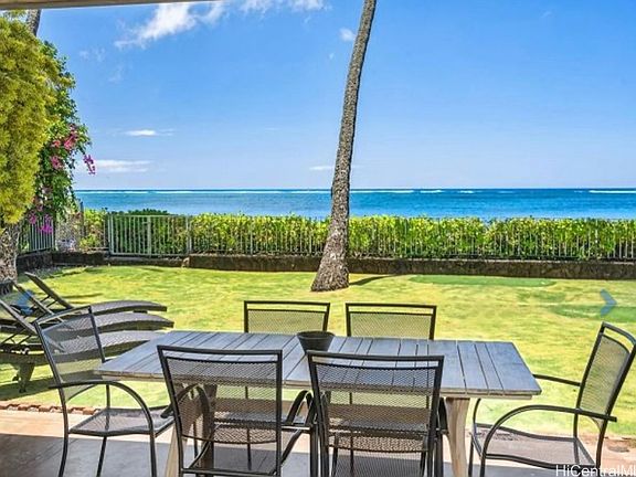 RARE, VINTAGE, MINT, BEACHFRONT OSSIPOFF GEM! Experience timeless Hawaii luxury in this exquisite 3-bedroom, 2.5-bathroom single-level home, meticulously crafted by renowned architect Vladimir Ossipoff. Nestled on a pristine, sandy, slight beachfront bluff, this architectural gem harmoniously blends indoor and outdoor living, with breathtaking ocean views+uninterrupted tranquility. Step inside this spacious, airy open floor plan, highlighted by classic mid-century design elements and artistry. The gourmet kitchen, equipped with top-line appliances, flows into the dining+living areas, perfect for entertaining guests or enjoying family evenings. Relax+unwind in the new hot tub, watching the stars above+the cool tradewinds, or stay cool inside, with central air conditioning. The enclosed garage and subtle lighting offer convenience+security. Embrace a lifestyle of elegance and a quiet, timeless luxury this special home beholds, while just minutes to world-class dining, shopping, schools, hospitals, and the best of Honolulu, or Waimanalo, Kailua, Northshore, & West Oahu! Every detail of this dream home embodies thoughtful ambiance, privacy, and the expansive beauty of Ossipoff.