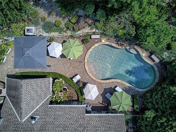 Phenomenal backyard OASIS w/ inground pool. Covered outdoor area w/stone fireplace for those chilly evenings! 1-1/2 story floor plan w/ formal dining, great room, see thru fireplace into hearth room. Updated kitchen island w/ custom wood countertop. Newer appliances w/ Granite countertops on other cabinets. Wood Floors on main and 2nd floor. Elegance throughout w/ exterior door to pool from master suite. Double vanity, whirlpool tub & double walk in closets. Large bedrooms on 2nd floor w/ loft ! Fenced in area around the pool w/ fabulous upper backyard. Unfinished lower level for great storage ! Cul de sac and privacy galore !!