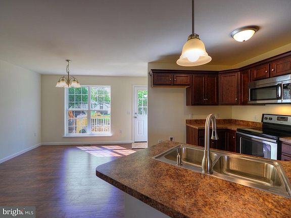 Brand new 4 bedroom, 2.5 bath home with finished family room in lower level! Kitchen features hand-scraped wood look laminate flooring, stainless appliances, and opens to both dining area and living room. Large windows in dining area and rear door to deck allow an abundance of natural light to flow through the main floor. Master bedroom has walk-in closet, private full bath. Laundry on 2nd floor for convenience. Family room in partially finished basement with large unfinished area for storage. Oversized 1 car garage (both width and depth), paved drive, relaxing front porch and 1 yr builder warranty included! Pictures are of similar home (reverse plan).