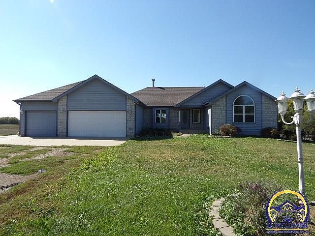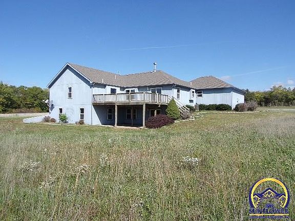 Shawnee Heights Schools!!! Beautiful home built in 2002 has 4 bedrooms (3 + office with a closet), 3.5 baths, stone fireplace, nice kitchen with lots of cabinets and pantry, formal dining plus eat in kitchen. Nice master bedroom and bath, main floor utility, nice deck overlooking the acreage. Don't forget about the 3 car garage too. Full walk-out basement with family room and rec room. Over 4,150 finished sq ft---2,635 on main floor-- and sits on 13.54 acres. This one won't last so you better hurry!!!