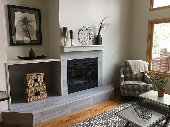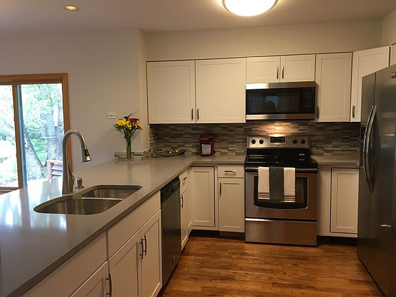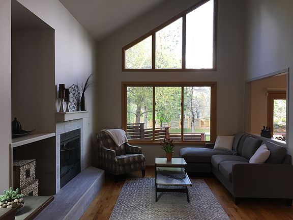 Open Sun, 1-4. Stunning house lives larger than its square footage. Natural light shines through abundant windows, skylights, vaulted ceilings and an open living / dining / kitchen floor plan. Beautiful flagstone patio looks out over HOA pond. Master suite has a walk-in closet and updated bath. Finished basement has spa-like full bath, nice bedroom & rec room (or 5th bedroom). Move-in ready with remodeled kitchen with quartz countertops, plus fresh paint, double-pane windows and more.