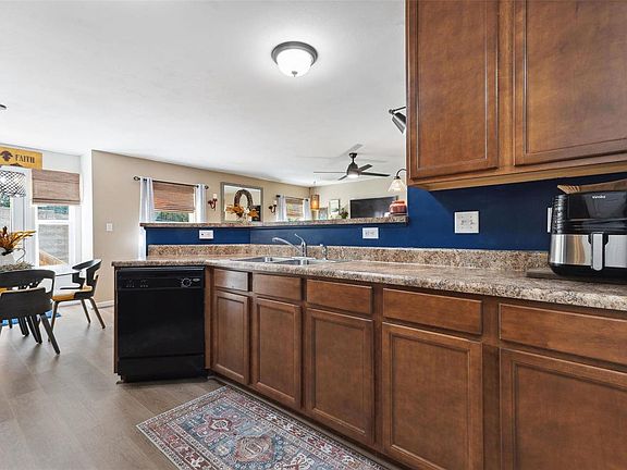 Spacious End unit townhome with private patio! New Luxury Vinyl Plank flooring on main floor 2023! Open floor plan. Great rm with gas fireplace & stone surround. Chic lighting. Kitchen has wood cabinets, pantry, Breakfast bar & black appliances including overhead microwave. Deck off Breakfast rm leads to 20 x 13 paver patio. Master Bedrm: 2 walk-in closets & luxury Bath with dual basin vanity, soaking tub, & shower with shower seat. 2nd Bedrm with walk-in closet. Lighted ceiling fans in Bedrms & Great rm. Convenient 2nd Floor Laundry. 2nd Full Bath has oversized low profile shower with seat with grab bars. Lower level offers: egress window, rough in plumbing & LG space to finish. New in 2023: 14 Seer AC & A-Coil with warranty. Water Htr new 2022. Sump pit & pump. 2 Car Garage with exterior keypad. Seller used command strips to hang art. Inclusions: Window treatments, Kitchen & Garage Refrig, Black & Gold Sconce lights, Master Bed picture shelves, shelf & picture in Master Bath. Some Accessible Features Location: End Unit