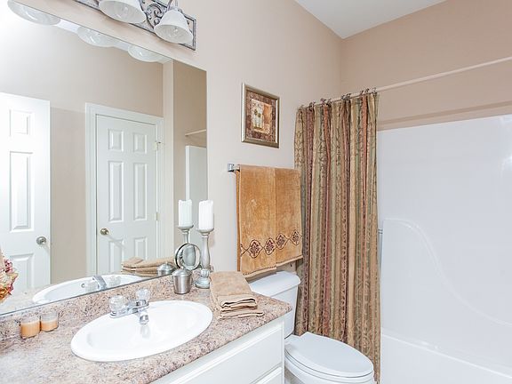 As soon as you walk into the quaint foyer you will fall in love with the cozy living room complete with gas fireplace. Step through to the large kitchen and have your morning coffee next to the beautiful large window in the breakfast nook. Guests can sit and visit at the breakfast bar or in the dining area that's large enough for full length table- perfect for entertaining. The spacious master bedroom feels luxurious with trey ceilings, large walk in closet, and it's own entry onto the private screened in back porch. Relax in the master bath that features jetted tub, separate shower, and separate vanities. The second bedroom is bathed in light through the large window and has its own large walk in closet. Another full bath makes this 2/2 the most charming home!