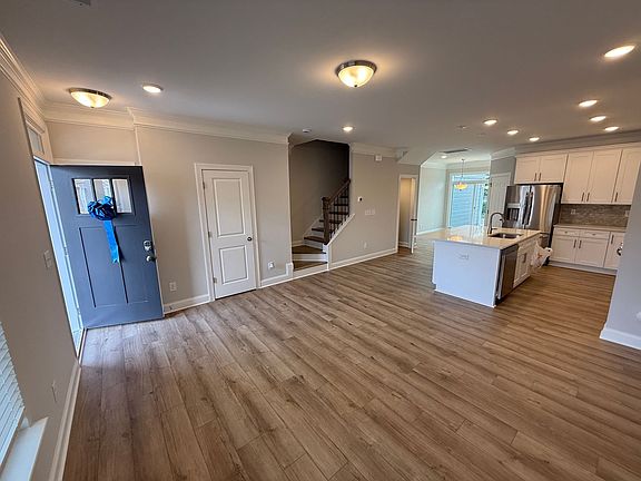 This brand new townhome is in the coveted Hickory Ridge High School district. You can walk to Harris Teeter, shopping, and dining from the gorgeous home. As you enter this gem, you will love the luxury flooring, and such an open plan. The oversized island in the kitchen will make food prep a breeze. The gas range with 5 burners will make you want to cook everyday! As you enter upstairs you can't help but notice the wood steps and hallway. Washer and dryer is included in this home also. Move in ready!!