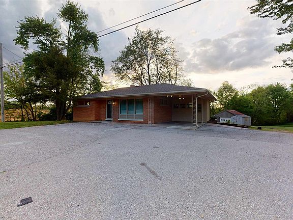 Neat and clean 3 BR, 2 BA brick ranch with a finished walk-out basement sitting on .67 of an acre. Click on the virtual tour link to experience this home in 3D! Home has attached carport plus an outbuilding with a second carport behind it. The main level consists of a spacious living room and two bedrooms with original hardwood flooring, an eat-in kitchen and remodeled full bath with built-in hallway linen cabinet. Laundry area just off of the kitchen - washer and dryer are included in the sale. Finished walk-out basement offers a third bedroom, the second full bath and large, tiled living room and kitchen area complete with a stove and refrigerator. It is possible to use this level as an apartment/in-law suite since it has separate access and can easily share the laundry area. One HVAC system for the entire home. Replacement windows in basement. Roof 2012. Per owner, septic tank was replaced in 2002 (barrel in rear yard marks the tank location). The approximate property line is the gas meter at the corner of the property and the line angles to the woods per seller. Seller is providing a $525 AHS home warranty for the purchaser at closing. Property sold "as-is".