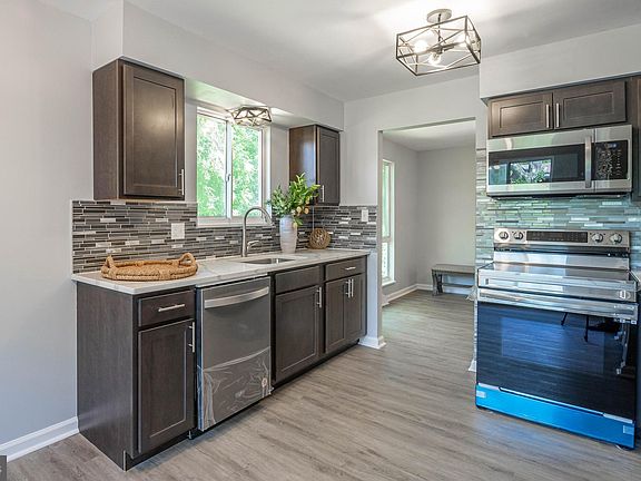 Spacious colonial on corner lot at the end of a quiet cul-de-sac street. Backing to woods and community walking trail. Completely turnkey property, updated from top to bottom. Brand new kitchen with quartz countertops and stainless steel appliances. Renovated bathrooms with stylish ceramics professionally installed in every bathroom. Master bedroom offers , walk-in closet and private master bath. First floor plan has generous great room off to the side of the house with wood burning fireplace and vaulted ceilings. Brand new flooring throughout. Walk out basement offers beautiful bathroom and private bedroom, as well as space for entertainment center or home office or gym. Private deck off of rear. Columbia offers many of great attractions; excellent shopping and dining, concert venue, parks.