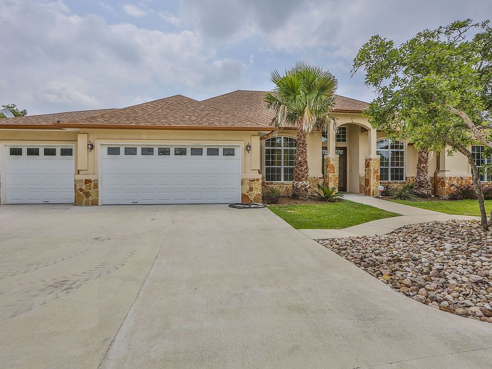 MEDITERRANEAN-STYLE HOME Uniquely designed; open floor plan. 3BR 2.5BA, kitchen has custom cabinets; over-sized butlers pantry plus island; open to family room. Large closets in every room. Spray foam attic insulation, new roof 5 5 17. Spacious utility room w sink; lots of storage. 3 car garage. Outdoor living space entertaining. $435,000