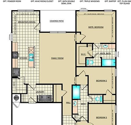 The charming rc magnolia plan is full of curb appeal with its welcoming front porch and front yard landscaping. This home features an open floor plan with 4 bedrooms, 2 bathrooms, and a large family room. Also enjoy a cozy breakfast/dining area, and a lovely kitchen fully equipped with energy-efficient appliances, ample counter space, and a roomy pantry for snacking and delicious family meals. Plus, a covered back porch for entertaining and relaxing. Learn more about this home today! *Photo of similar model.