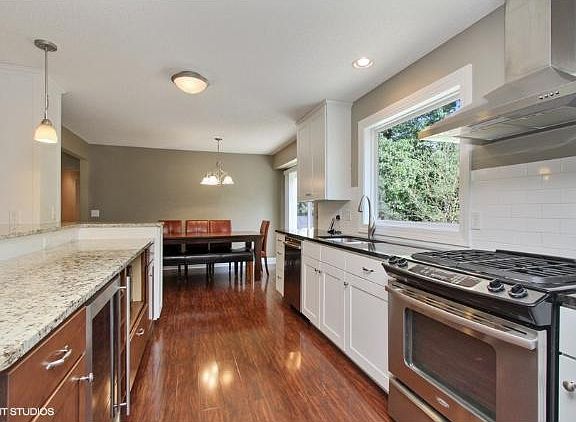 Move in ready home with an open floor plan. Gourmet kitchen with SS gas stove & appliances, wine fridge, large granite island. Fresh, neutral paint & carpet. 3 BR's on main level, including master with bath. Deck overlooks large, open yard & woods beyond.