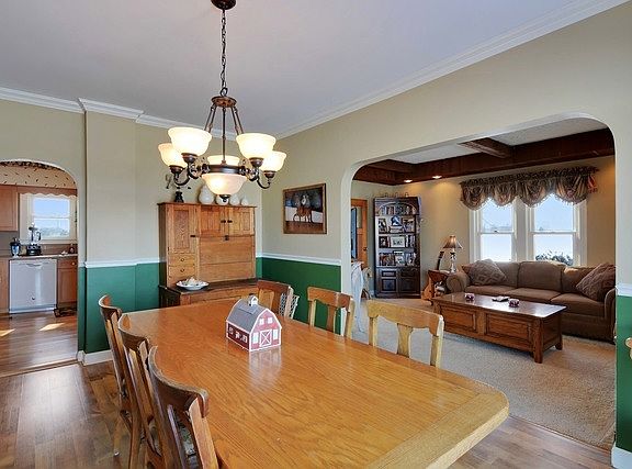 Beautiful horse farm on 49 acres, 26 tillable, w/ 41 indoor stalls w/ mats & 26 outdoor stalls in a covered stable-mare motel. The indoor riding arena- 60x200 is open to 2 barns. 14 paddocks & 3 pastures. Set up for cattle too. 80x160 shop, 40x100 storage shed, the "B" barn & a heated Main barn w/ a kitchen, breeding & wash area, a conveyor system can be used for 5000 bales of hay in loft. The Farm House on the property would be an incredible place for a horse trainer.