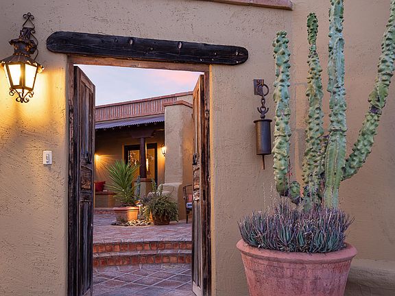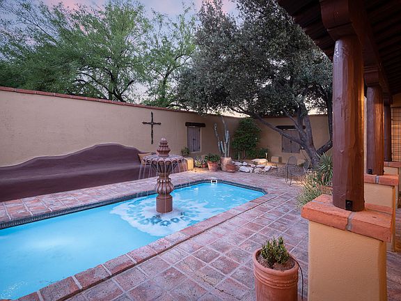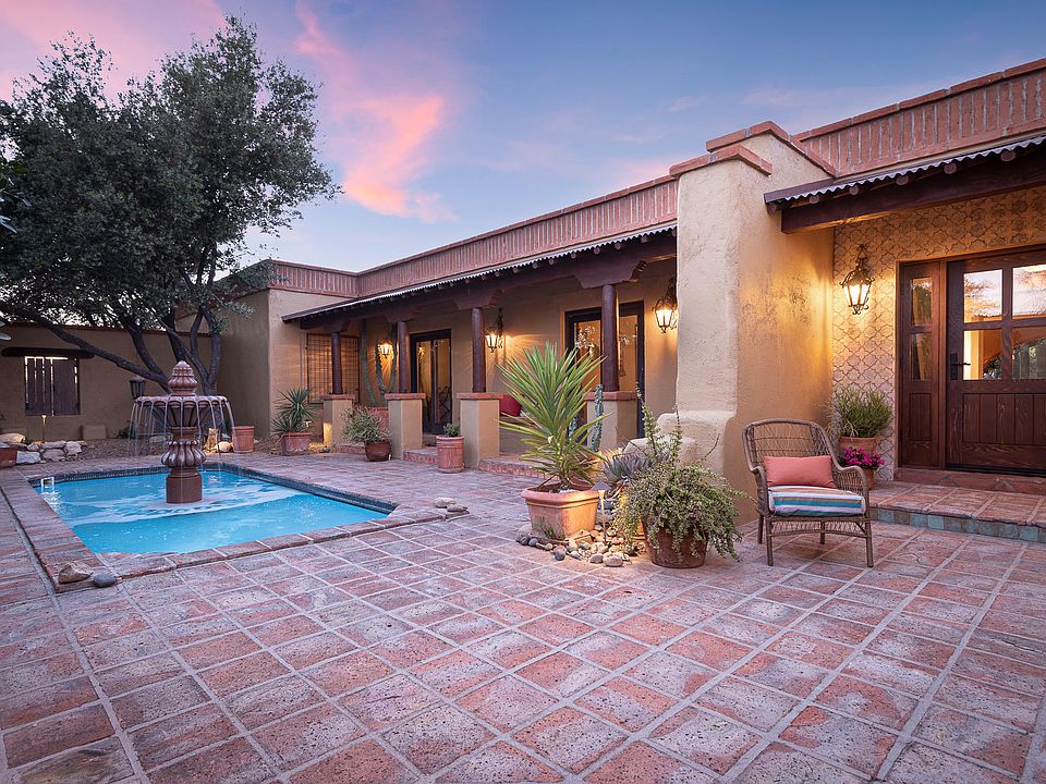 3D VIRTUAL TOUR/DRONE VIDEO ON PHOTOS TAB-Quintessential Tucson residence on 1.24 acre north/south lot at the end of a cul-de-sac in the heart of the Catalina Foothills. Enjoy the very best of desert life from this 2877 sf home loaded w/ character, amenities, privacy & views. Enter through charming wooden gates into a huge front courtyard w/magnificent water feature, banco seating & covered patio area. Front door surrounded w/custom tile. This home is a masterpiece w/ warmth added by saltillo tile, plank wood floors, saguaro ribbed ceilings & remodeled kitchen & bathrooms that are seamless w/ the style of the home. Full library w/half moon glass window overlooking backyard w/ another water feature. Kitchen w/mesquite wood center island, custom cabinets, modern appliances ...CONTINUED wood-beamed ceilings leads to cozy outdoor living room w/ bee-hive fireplace. Outdoor living room leads to additional seating and banco, outdoor BBQ area and overlooks a backyard lush with trees and desert plantings. Additional amenities in the backyard include pool, spa, outdoor shower and additional water feature. Adjacent to kitchen is formal dining area/living room with dramatic high ceilings, saguaro ribbed ceiling, skylights that flood in natural light and custom built-ins. The hearth is the center piece of this truly special room. Two guest suites facing the front courtyard are separated by a remodeled jack & jill bathroom. Each room has a sliding glass door that leads to the front courtyard. Powder room at entry for guests. Owner's wing of the house includes master bedroom w/ bee-hive fireplace and patio access, newly remodeled bathroom w/ double vanities, large walk-in mosaic tile surrounded shower w/ skylight and large office with built-ins. Remodeled laundry room w/ storage cabinets. Very convenient Tucson location w/ quick access to downtown and the University of Arizona as well as La Encantada Mall and world-class golf resorts in the foothills.
