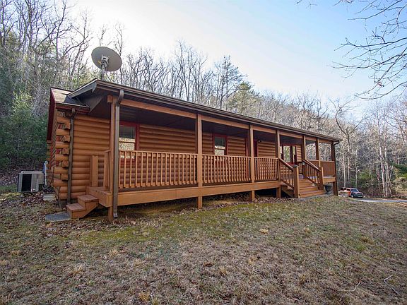 Come home every day to the seclusion of 50 acres and the sounds of a running creek right off of your covered front porch! Located just a few minutes to schools and VT, this freshly stained log home makes the perfect place to call home. Inside you'll find an open floorplan with an expansive kitchen boasting of stainless steel appliances and a working island. Ceramic tiled baths, hardwood floors and large bedrooms round out the finished square footage on the main level. The unfinished basement allows for expansion possibilities along with a garage and an area for a workshop. The large back deck and a vast, covered front porch provides areas for rocking and relaxing. The beautiful acreage lends itself to hiking, hunting and a flat area by the creek is the perfect spot for a firepit and lounging. If a daily dose of peace and seclusion is part of your New Year's resolution, this home and land is a must see! Loaded with the feel of country living while convenient to all things Blacksburg!