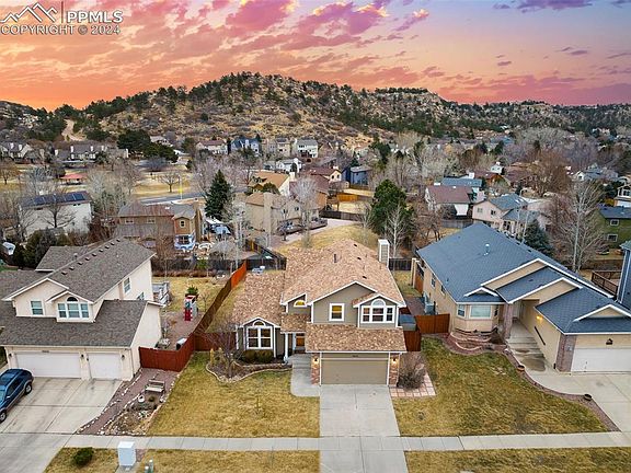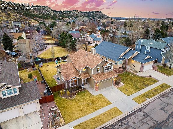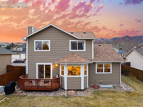 Move to the desirable Northwest side to live in this modernly updated 2-story home located on the Front Range that features 4 bedrooms and 4 bathrooms. You are welcomed-in with hardwood floors and vaulted ceilings that make this home light and bright. The beautifully remodeled kitchen opens to the family room with a gas fireplace to create an inviting space to host. The formal dining room, kitchen eat-in nook, and granite island bar provide more than enough space for entertaining. Laundry room with utility sink and powder room are conveniently located on the main floor. The upper floor includes a spacious Primary Suite with Pike’s Peak views, 2 additional bedrooms with Ute Valley bluff views, and an extra updated full bath. Enjoy the vaulted Primary Suite with a remodeled 5-piece bathroom (quartz countertops, soaking tub, new shower with rainfall showerhead), walk-in closet, and sitting area. The oversized finished basement includes a rec room with entertainment center, additional bedroom/office, full bath, and storage. This basement level is the perfect spot for gatherings, movie night, or a playroom. Newer luxury carpet throughout and new Daikin furnace in 2022. Garage includes custom ceiling storage and workbench. Experience quintessential Colorado living with an expansive fenced backyard and a walkout deck, Ute Valley Park’s miles of trails are at your doorstep, iconic Garden of the Gods Park minutes away, and Pinon Valley Park playground 4 doors down. Just a short drive from coffee shops, grocery stores, breweries, restaurants, Blodgett Peak trailhead, and I-25. Don't miss out on this amazing home nestled in the Rocky Mountain foothills.