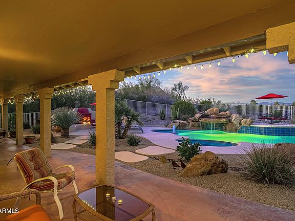 RESORT LIVING AND SO CLOSE TO EVERYTHING This Western Town Has to Offer! RESORT Means Restful Home, Patios Reflecting the Mountain View & Privacy. Covered Patios and Inviting Surrounding Lounging Pool Patios. A Heated Play Pool With Custom Designed Rock Waterfalls & Fountain. Wander Through The Lemon, Lime, Pomegranate, Peach and Fig Lined Paths. Stop to Reflect at the Fire Pit as The View is Ever Changing. Now it's Time to Return Home to the Outdoor Kitchen by The Pool. After Dinner Enjoy the Heated Spa as Sunset is Beckoning Against the Stunning Mountain Views. There is Room to Bring your Horse on this 1.6 Ac Property. Enjoy The 5 Bedroom, Or Four With a Convenient Office Room. 2.5 Baths, 2 1/2 Garage. A Car/RV Port & Room for More Parking. Two New Hot Water Tanks, SOON New AC/HEAT