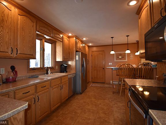 GORGEOUS HOME IN NEAR PERFECT CONDITION! You'll notice the pride of ownership once you step into this 4 bedroom, 2 bath home on 2.2 wooded acres West of Warroad. The kitchen has recently been renovated with custom hardwood cabinets, new appliances, raised built-in breakfast table, recessed lighting & new flooring...the whole 9 yards! The main floor full bathroom is also updated & features a tiled shower, a jetted tub, tile flooring with underfloor heat & ample storage in the custom cabinetry. Finished space in the basement includes a huge family room, lower level bedroom with a private 3/4 bath, large laundry facilities with built-in shelving & a bonus craft/hobby room. Walk out the basement door into a private backyard space perfect for outdoor enjoyment. The 2-car attached garage has a separate stairwell leading right into the basement & the 30x45 pole building is perfect for your storage needs which also includes a heated workshop space. This one-owner property will not disappoint!