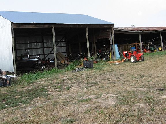 Two bedroom, two bath, ranch style home. Has nice size barn, one third has been newly rebuilt. Machine shed behind barn. Lots of trees.