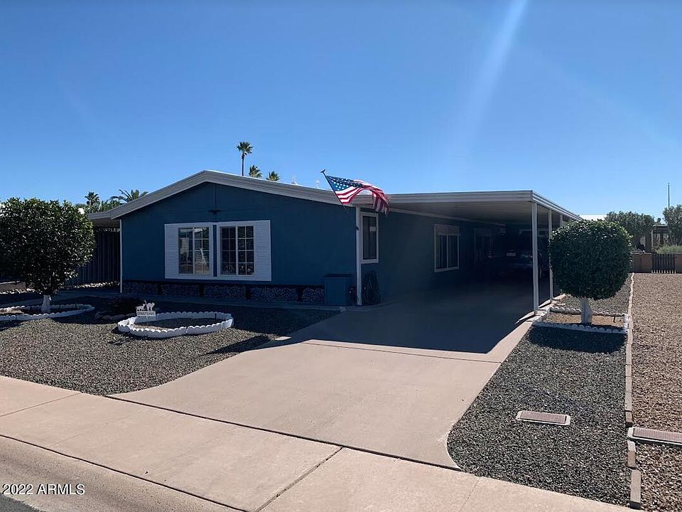 Don't miss this Very RARE & Hard to find 3 bedroom, 2 bath home in the highly sought after Apache Wells community. In addition to the home, there is a heated and cooled 35'x12'Arizona Room plus a 10'x12' shed/workshop. Brand new Ac in Arizona room in 2020. Brand New main house AC in 2019. Huge kitchen with an island and plenty of storage, separate laundry room. Dining Room, plus spacious family and living rooms. Beautiful zero maintenance landscaped yard. Extended covered multi-car carport. These 3 bedroom homes hardly ever come available in here! This community has it all!! Plenty of activities to take part in. Golf, Pickle Ball, Shuffle Board, Swimming, Fitness Center etc.