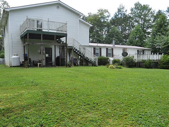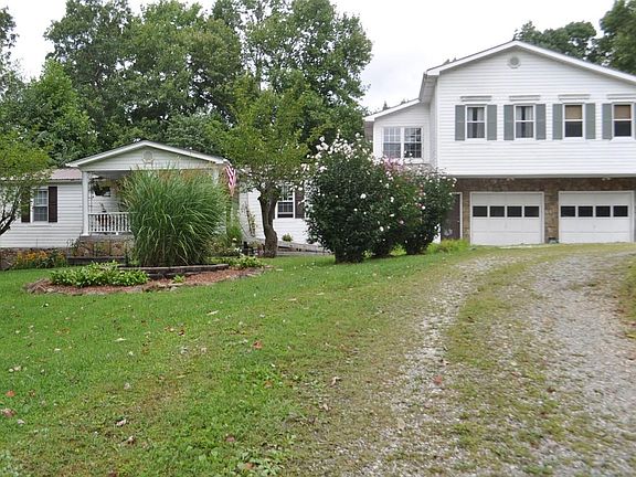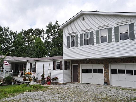 Country living at it's best!! This 2600 square feet home on 3.4 acres in the Flat Gap area of Pound consists of a 1984 manufactured home with a site built addition and a 20 x27 two car attached garage. This is a well maintained home with 3 bedrooms and two full bathrooms on the lower level. One of the bathrooms has been updated for handicap access with a walk in shower. A handicap ramp goes up to the covered front porch. The ramp is free standing and can easily be removed if desired. From the front porch enter into the large living room featuring a propane fireplace and beamed cathedral ceilings and laminate flooring, also find entrances to the three downstairs bedrooms, to the right of entering is the kitchen/dining combination with tile floors and laminated counter tops. The appliances including a refrigerator an electric glass top range and built in dishwasher. The laundry room is off of the kitchen and includes the washer and dryer. From the laundry room is a stair case leading to the upper floor where you will find a large open area that can be used for whatever one could want such as a game room or a family room, it has a free standing propane fireplace for comfort on those cold winter days and nights. Also on the upper level is a room that can be used as a bedroom, a second small room is ideal for a home office or maybe a sewing room. A half bath is on the upper level also. Coming down the stairs to the lower level is a door that provides inside entry to the garage. The three bedrooms downstairs are getting new laminate flooring installed. Outside the home has vinyl siding with a stone front on the garage underpinning. There are two large decks on the rear of the house. The metal roof is one year old and the heat pump is aprox 5 years old. The septic was pumped 2 years ago. The the yard is well landscaped and is level to sloping making an ideal place for the children to play. Masks required for inside viewing due to health issues of occupants.