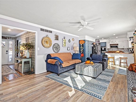 Welcome to one-floor living in this beautifully updated ranch home in the Rustic Hills neighborhood of Montville Township. This 3 bedroom 2.5 bath home has been updated from end to end. As you enter the front door, you are greeted by sliding barn doors to your left and right and luxury vinyl flooring throughout the first floor. Through the door to your left is the large living room / dining area with plenty of natural light. Further down the hall leads you to the cozy family room and gas fireplace for those brisk evenings. You'll see the kitchen has been updated with shaker cabinets, walnut butcher block counters, and a handy farm sink and includes stainless steel appliances (2019). Peer out the windows to see the spacious backyard with a deck, patio, and Sunsetter awning for your summer enjoyment. Next to the kitchen is a convenient laundry room and 1/2 bath, also adorned with barn doors. The other end of the house features a generous master bedroom and bath as well as 2 other bedrooms and full bath beautifully updated. The basement has been waterproofed on the interior and the attic has had 15" of insulation installed in 2021. The outside of the house was painted and custom cedar shutters hung in 2022 and you'll find the 2-car garage to be roomy as well. This home is 5-10 minutes from I-71, historic downtown Medina, and nearby grocery stores and restaurants. It checks all the boxes for one-floor living. Schedule your showing today!