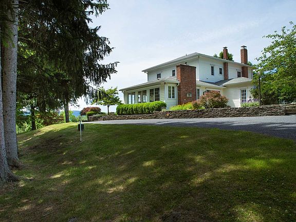 Radcliffe House circa 1948, Stately Colonial Italianate Homestead Farm of William H. Radcliffe until 1918. Overlooking the Hudson River and Catskill Mountains with views capturing the Elegance of the Hudson River Valley. Spacious Country Kitchen, Butler's Pantry, Sun Room with Fireplace, Living Room with Fireplace, Formal Dining Room, Billiard Room and 4 Bedrooms on the second level. Outdoor space features an inground pool, stone terraces and beautiful landscaping. Outbuildings include a Period Barn, Stone Summer Kitchen and 2 Bay Garage with Guest House potential. Drive entrance adorned by two Blue Stone Pillars. Minutes from Rhinebeck and all it's amenities.