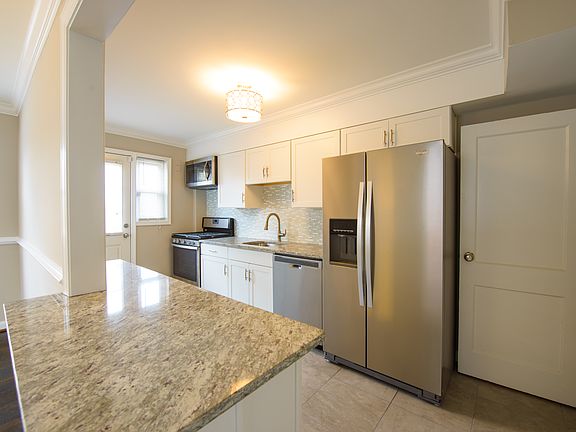 OUTSTANDING TOTALLY RENOVATED END OF GROUP BRICK TOWNHOUSE IN PERFECT MOVE IN CONDITION. BRAND NEW KITCHEN FEATURING HIGH END CABINETS, GRANITE COUNTER TOPS, STAINLESS STEEL APPLIANCES, CERAMIC TILE FLOORING, & A TILE BACK SPLASH. UPDATED BATHROOMS, REFINISHED HARDWOOD FLOORING, NEW CARPET, NEW LIGHT FIXTURES, TOTALLY FINISHED BASEMENT, LARGE DECK, & A FENCED IN BACK YARD. SHOWS PERFECT!