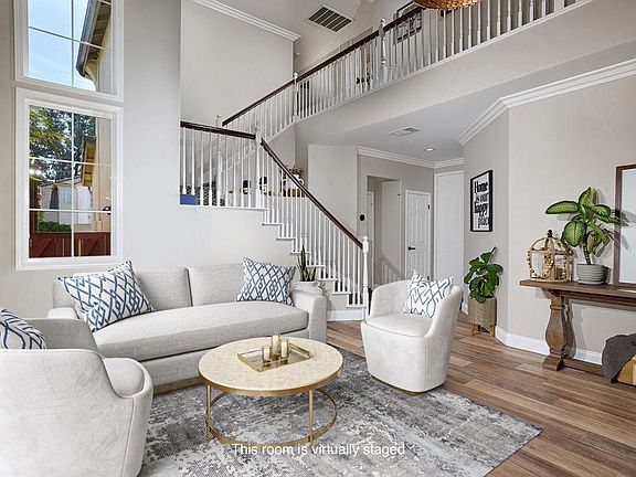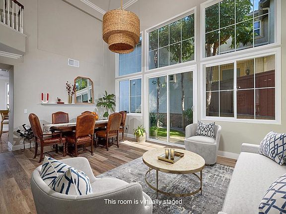 Light and bright! Welcome to the best floorplan in the neighborhood with a wall of windows in the living room and a beautiful view from the kitchen, family room, primary suite, and retreat. With a full bedroom and bath on the main floor, this home is set for guests. The primary has not only an organized and spacious closet, beautiful bathroom with separate shower and air tub, but a retreat that can be used for an office, gym, yoga room, or cozy lounge. Everyone needs a little extra space! There are two additional bedrooms and a full bath upstairs. And so many upgrades! New furnace and A/C unit with wifi ecobee controller; new luxury vinyl plank flooring upstairs and down; new baseboards throughout; crown moulding throughout; new paint top to bottom; all new outlets and light switches, door handles and hinges; all new fans/lights (LED); new solar that includes updated sub-electrical panel to today's standards that can also manage more electricity through it; 240 volt EV plug; all new vanities and toilets; garage overhead storage; new garage doors with windows, insulated; new artificial turf, paver patio and wifi drip system; new window coverings including upgraded motorized remote shades in the primary bedroom and family room; all new outside lights; and new dishwasher. And the HOA takes care of the front yard! The location is prime--quiet with a fabulous view. Carlsbad schools! Hope Elementary, Calavera Hills Middle School, and Sage Creek or Carlsbad High School. Easy access to main roads!