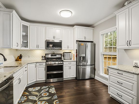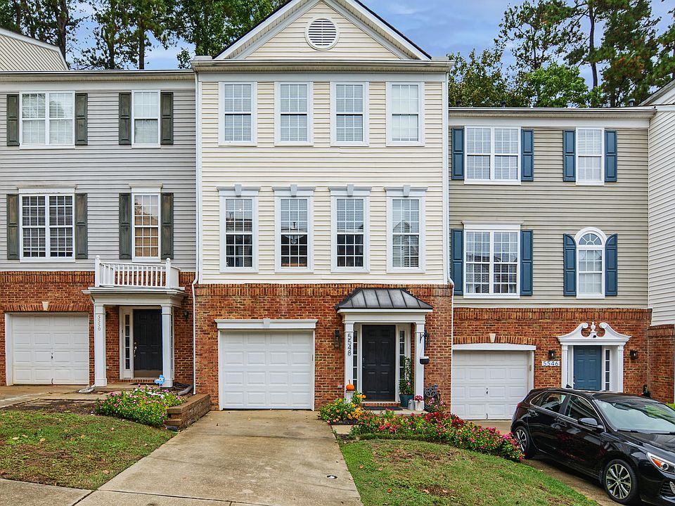 Move-in ready townhome with updates throughout. Conveniently located between I-440 & I-540 in a desirable school district. First floor includes a flex room with custom paneling/shutters, half bath, and large utility room with shelving. Main level offers an open concept kitchen, dining, and living area. Completely remodeled kitchen offers granite countertops, custom mosaic tile backsplash, 42'' cabinets, stainless steel appliances, gas range with double oven (air fryer & convection), oven (2022), French door refrigerator (2024), and microwave (2025). Third floor has two spacious ensuite bedrooms; front primary with coffered accent wall and spa-like bath including walk-in shower & freestanding tub. Convenient laundry closet between the 2 bedrooms. Engineered Mohawk hardwood floors on 2nd & 3rd levels. New roof (2023), back door (2024), and garage door with smart opener (2025).
