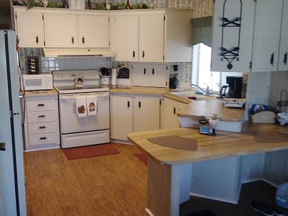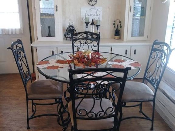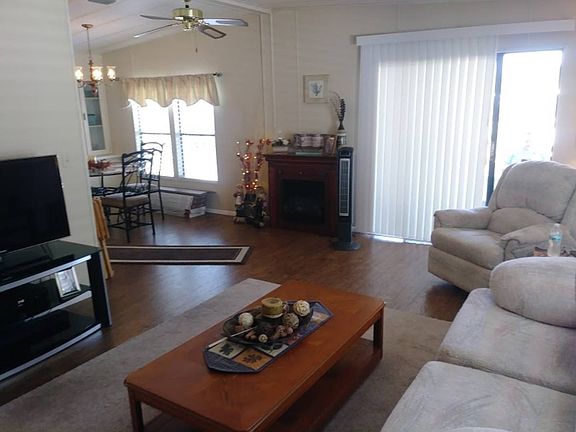 This 2 bedroom, 2 bathroom home has an attached shed that houses the included washer and dryer. The home comes with central A/C and heating, new subfloors and wood laminate throughout home, and roof over with 10 year transferable warranty. Plenty of cabinet space in this spacious kitchen. The dining area has built in cabinets. The open living area has sliding glass doors that lead to the NEW screened in front porch with a metal roof...perfect for entertaining and relaxing. As you enter the master bedroom the mirrored walk in closet enhances the size of the room and leads to the open vanity area and bathroom. The second bedroom also has plenty of closet space. The home comes with all appliances, washer and dryer, microwave, window treatments and light fixtures included. The lot rent of $941.38 monthly includes professional management, lawn maintenance, weekly garbage and yard waste pickup, irrigation, water, and sewer. Camelot Lakes Village is a gated community that offers resort style amenities and scenic lake and nature view that is close to shopping, dining, cultural attractions, and world famous beaches.