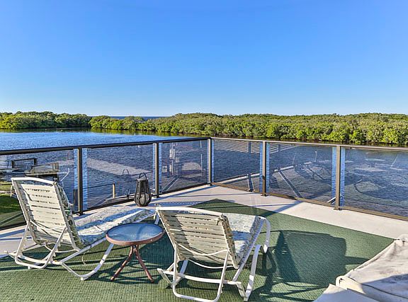 Stunning Courtyard-style waterfront home with sweeping Gulf views is now available. Enter the unique courtyard to find your private patio with pavers and pool/spa. The modern design chef's kitchen features custom cabinetry, granite countertops, stainless steel appliances and more. Formal dining room, living room, dinette & a gigantic great room with sliders opening out onto your water view. One room flows into another with endless potential for setting it up just the way you want. The open floor plan and travertine tiles throughout are perfect for entertaining! This 3189 sq.ft. home features 2 master suites, one downstairs and the 2nd located upstairs for panoramic views and privacy. The 2nd floor master features a huge master bath with a soaking tub with massage jets and separate shower stall. Private balcony with Gulf Views and deck for spectacular sunrises on this deep water canal with quick access to the Gulf of Mexico. You'll love covered patio area and the 16,000 lb boat lift & docks for your water toys. No rear neighbors. Plenty of space for entertaining inside and out. Membership to the exclusive Gulf Harbors Beach Club is available for just $156 a year. Possible owner finance with $250,000 down, 6% interest. Tenants have vacated. Call today for your private tour!