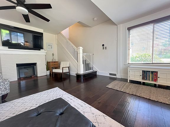 Lovely home in the hidden gem neighborhood of Stanton Heights on the border of Lawrenceville. The best of both worlds, walk or short drive to Butler street, but enjoy the peace, quiet, walkability, space and safety of a suburban feel within the city itself. Updated home with engineered hardwood flooring throughout. One bedroom main floor, 2 bedrooms upstairs, additional 4th captured smaller room can be used as part of 3rd room or nursery/office. Decorative fireplace. 2 full bath. Large family room leads to covered back porch overlooking yard. Partially finished walkout basement offers laundry, plenty of storage and workshop space. Central A/C and natural gas forced air furnace. 2 car garage w/ opener, 2 car driveway + additional off street parking pad (boat, trailer, play area, etc). 1/2 mile to Aldi, Pusadees, Lolev, Hop Farm, etc. Corner home sitting on 3 lots with excellent outdoor space, sunlight and space to garden. Min 1 year lease, renter responsible for all utilities + lawncare (can add on if desired, mower available). First+ last+ security deposit due at signing. Prefer no dogs, but negotiable.