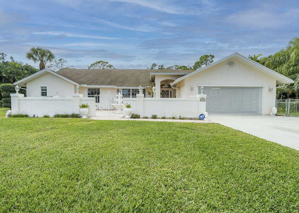 NO HOA in Suburban Lake Worth, FL. Bring your Businesses, Boats, RVs, Horses, and more to this Single Story Pool Home on 1+ acre lot! This 4 Bedroom + 2 Bonus Room, 2 Bath, 2 Car Garage features a split floor plan, vaulted ceilings, easy care floors, garage with built in storage, Heated Saltwater Pool, 2 Putting Greens, Lush Gardens, Gazebo, Orchid House, Pergola with Swing, 2 Sheds, Fully Fenced Back Yard, and so much more. Possible Agricultural Tax Exemption. Dimensions to be verified by buyer.