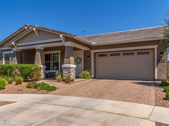 Light, Bright and Modern! Located in the premier gated community of Estates at Eastmark. This stunning single-level home offers a spacious layout w/3 bedrms, 2 versatile flex spaces + den, perfect for home office. The bright gourmet kitchen opens nicely to the living & dining areas. The butler's pantry offers extended counter space and cabinet storage. The owner's suite is complete with a large walk-in closet, en-suite bathroom featuring beautiful tile work, dual vanities, separate tub & walk-in shower. Step outside to your private, low-maintenance backyard oasis. Enjoy the extended patio, turf, & stylish pergola. The 3-car garage offers ample storage & parking space. Enjoy the Eastmark community with top-notch amenities including parks, pools, gym & highly-rated schools. Why Build? Residents of the Estates at Eastmark have access to their own community center with community pool and spa. It's also gated offering even more privacy. This particular home is adjacent to a large common area with easy access to walking paths throughout the community. Other features of this home include: Wood grain tile plank floors throughout main living areas with carpet in the bedrooms. Owned water softener, window coverings throughout, upgraded lighting fixtures and fans, stainless appliances including a 5 burner gas cooktop. Home offers 2 flex spaces (front parlor and additional play room or teen space) plus a den plus a dining room. Need 2 home offices plus a kids area? Done! Or use one space as a library or music room! Endless opportunities! Eastmark has easy access to Loop 202, Mesa Gateway, shopping, schools, restaurants, you name it!