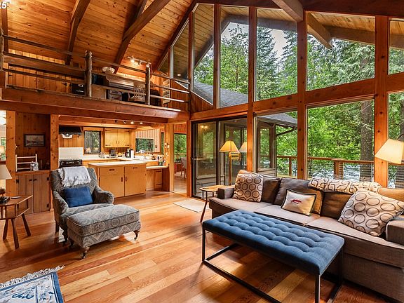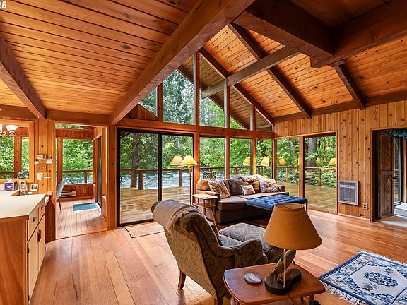 Your Private Paradise on the McKenzie River! Welcome to a truly one-of-a-kind sanctuary tucked along 162 feet of prime McKenzie River frontage. This well-maintained property offers a rare opportunity to own a peaceful, private oasis that simply cannot be recreated. Grandfathered into its location, making it not just beautiful, but irreplaceable. Surrounded by mature trees and lush natural landscape, the setting is nothing short of tranquil. Whether you’re sipping morning coffee on the newer 1,400 sq. ft. deck or listening to the river flow from the comfort of your primary suite, serenity comes standard. Inside, you'll find two spacious primary suites on the main level. One features golden oak floors, a jetted tub, separate shower, dual vanity, two walk-in closets, and a cozy wood stove. The second suite offers vaulted ceilings, double closets, and direct access to the deck with stunning river views. A loft-style third bedroom upstairs. The living room showcases a vaulted ceiling, wood burning fireplace, hardwood floors, and a ceiling fan. Indoor utility room includes a convenient toilet and sink. Abundant storage throughout. Two-detached car garage with a 12’ x 18’ workshop ideal for hobbies, gear, or projects. Additional highlights: exterior painted in 2012, new roof in 2014, septic recently pumped. Not in a floodplain — no flood insurance required. Whether you're seeking a full-time residence, a vacation getaway, or a once-in-a-lifetime investment, this riverfront property checks all the boxes.