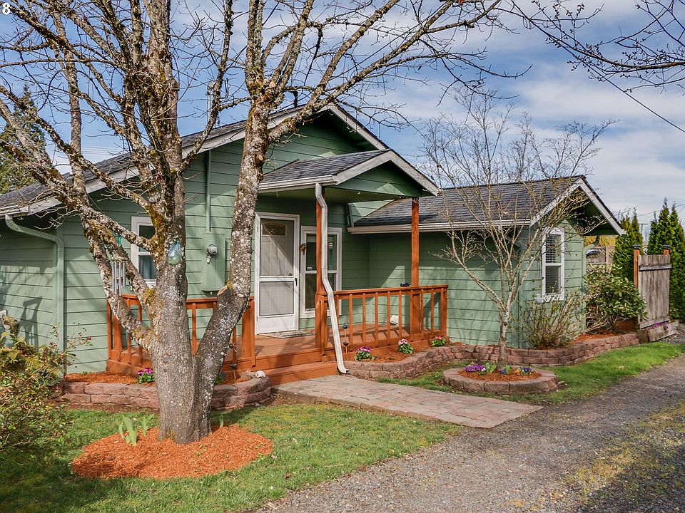 Adorable fully remodeled home with vaulted ceilings, skylights, hardwood floors, galley kitchen with pantry/closet w/utility hookups, master suite, guest bedroom has small patio wired for hot tub, dining area with slider to covered deck, patio, detached studio w/kitchenette & full bath (not included in # of bed/bath), 1-car garage, water feature, raised garden beds, located on a private panhandle lot with gated entry.