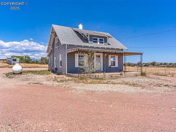 Come see this charming, recently remodeled 3-bedroom, 1-bathroom home located on a 4+ acre property in Penrose! Built in 1914, this home has a cozy farmhouse feel and no HOA or covenants. Enter through the covered front porch into a large living room filled with plenty of windows for that warm, natural lighting. Next, you'll step into the kitchen with breakfast nook, a full bathroom, and a main-level bedroom. Upstairs you'll find two additional bedrooms and an office/storage room with a bright south facing window. Newly installed vinyl flooring and vinyl double pane windows throughout the entire home, upstairs and down. Outside you'll find a garage/shop with ample storage, as well as plenty of space on the property to store RVs or other toys. The perimeter is fully fenced, includes 4 shares of Beaver Park Water, and is ready for horses, a hobby farm or just wide open space for your enjoyment. Brand new plumbing, hot water heater and sump pump! Furnace installed in 2022. Quick access to Highway 50 and 115; makes commuting to Pueblo, Florence, Canon City and Colorado Springs quick and easy!