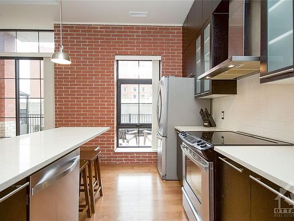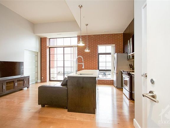 Upscale bright and modern one bedroom condo in a fantastic location close to all amenities, transit, the Ottawa Airport and Carleton University. Features include exposed brick wall, 12' ceilings, brand new laundry in suite, open concept floor plan with large quartz island, large windows with lots of natural light, cheater ensuite bathroom, walk in closet, storage locker, and gas BBQ on huge private balcony! This contemporary unit features many quality upgrades including pre-engineered hardwood floors, quartz counters, stainless steel appliances, and ceiling height cabinetry. Building amenities include fitness center, pet spa, bike repair room and party room with bar area. Unit includes one underground parking spot and outdoor visitor parking is available; parking spot can be rented out if not required as there is a high demand for parking in the building.