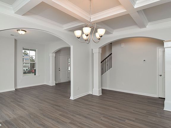 Our lovely Roland floor plan is a five bedroom, three-and-one-half bath home with a spacious bonus room! The formal living room opens to the formal dining room with coffered ceiling and pillars. The family room has a gas fireplace and opens to a spectacular kitchen with large island, gray cabinets with hardware, tile backsplash, pendant lighting, gas range, granite countertops, stainless steel appliances, and corner pantry! Luxury vinyl flooring flows throughout the main floor living areas and hardwood stairs with open metal spindles. Upstairs you will find all five bedrooms, including the master suite with his and her closets and vanities, separate tub and shower, granite, and cabinet hardware. Two secondary baths have raised vanities, cabinet hardware, and framed mirrors. The laundry and bonus rooms are also on the second floor! Irrigation included in front yard. Make this home yours today!