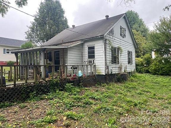 1 and half story in town with city water and sewer. Home was built appox. 1920 some 10 foot ceilings on main level older trim and wide moldings. Primary bedroom is located on the main as well as a bonus room. upper level features 2 more rooms that have been used as bedrooms. Elec. heat & window AC (heat pump needs repair) some replacement windows. Large Kitchen that will need all updates, floor is weak. Covered 19X6 front porch 7X7 covered back porch with 7X22 back deck that needs attention. Home is in city very close access to walking trails. Driveway is shared see recorded deed. 20 minutes to Morganton 40 minutes to Asheville. THIS HOME NEEDS RENOVACTION AND TLC. Being sold AS IS.