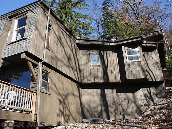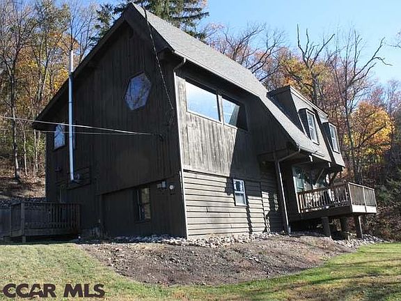 Newly updated unique contemporary with extraordinary views of Tussey Mountain. Every space of this home was designed to capture nature with breathtaking views with oversized windows throughout. This home is perfect for entertaining or just enjoying the vast open space with beamed cathedral ceilings, hardwood wide planked floors, large stunning stone fireplace with custom wrought iron curved doors. Cozy up in the lower level with a stand-alone stove surrounded with stonework, half bath, full bedroom and nice walk out deck. Large master suite with high ceilings and recessed lighting. Office off second bedroom on main floor. New state of the art and environmentally friendly septic system. Property rest nearly one acre, two miles from campus! Historic Lemont nearby.