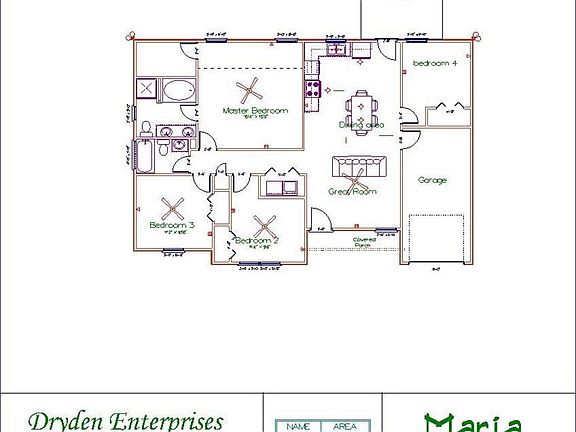 Maria plan by Dryden Enterprises! Charming 1 story home with 4 bedrooms & 2 baths! Home opens up into the family room & flows nicely into the dining area & kitchen! Kitchen features stainless appliances & patio access. 1 bedroom is located off the kitchen. Master suite features vaulted ceiling with fan, private bath & walk-in closet. Private bath includes separate tub & shower & dual vanity