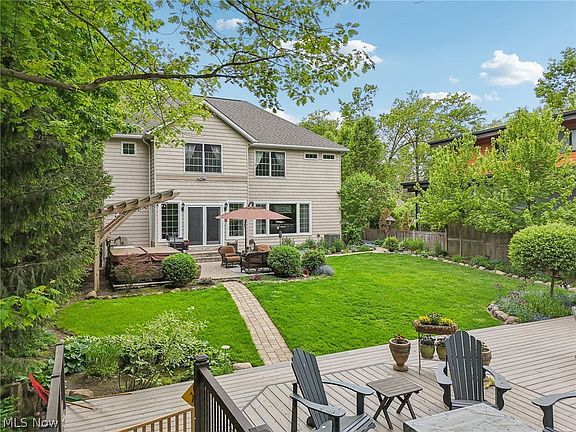 Exquisite home and property located near the center of town, in quaint Bay Village, Ohio. This gorgeous home sits on a scenic lot backing to Cahoon Creek, and features a large composite deck overlooking the ravine, a walking path, and a firepit at the base of the creek! This beautifully designed and decorated colonial offers 5 bedrooms and 3 full baths/2 half baths, redone hardwood flooring, comfortable open living spaces, and sun-filled rooms. As you enter the inviting foyer, a cozy formal living room opens to the great room via french doors. The main living space is open and embraces the scenic, wooded views. The kitchen is truly the heart of the home, featuring an oversized island with seating, a dining area, granite countertops, a large, walk-in pantry, and high-end appliances. Open from the kitchen is the comfortable great room with a stone fireplace and built-ins. The laundry room/mudroom is an additional bonus, with built-ins and a dog wash! A half bath finishes out this level. Upstairs, the primary bedroom offers serene views of the wooded property, a spacious bedroom and en-suite with a soaking tub and separate shower, as well as a walk-in closet. 2 additional bedrooms enjoy ensuite bathrooms, and a 3rd bedroom, currently used as an office, features a private entrance from the garage. The lower level has additional recreation space, including a rec. room, bar, a half bath, and loads of storage. Outside you can enjoy entertaining and leisure time on the expansive paver patio, and large deck. Experience the beauty of nature every day in a location that cannot be topped. Steps to schools, library, Lake Erie shores, shops, and restaurants.