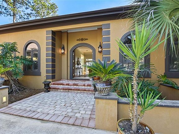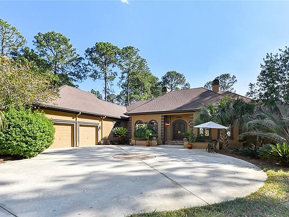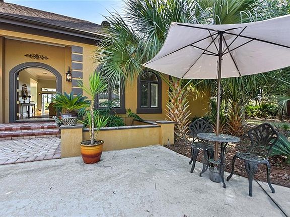 Surprises await as you stroll through the courtyard patio to the entrance of this custom home. Open the gorgeous wood double doors and you are transported to a feeling Coastal Casual. Golf Course and Salt Marshes...Coastal vibes throughout. Light and airy finishes.Beautiful sunsets from the pavers of the open lanai, screened porch, or wooden deck. Views to the marshes of the St. Marys River, overlooking #8 green of Osprey Cove. Double gas fireplace, enjoy from the main living area or the owner's suite bedroom 4 or 5 BR house, one currently used as an office. 3.5 bathrooms. Laundry room has bonus space. Great split floorplan. Sea salt is the color of choice. Beautiful solid oak flooring. Centrally located in the neighborhood. Near golf facilities and clubhouse. Large backyard. Pindo palms, and fenced side yard.