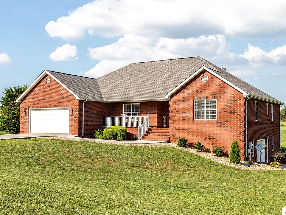 This immaculately kept all brick basement rancher has it all. Open floor plan, tons of natural light, hardwood floors with built in wooden floor vents, over sized owner suite, large guest bedrooms and closets. The large unfinished basement has a third garage and is plumbed for a full bathroom including exhaust vent. Flat acre lot backing up to a family farm and beautiful mountain views upon entering the subdivision. Roof replaced in 2011 with transferable 30 year warranty. County taxes only. Do NOT let this one get away!